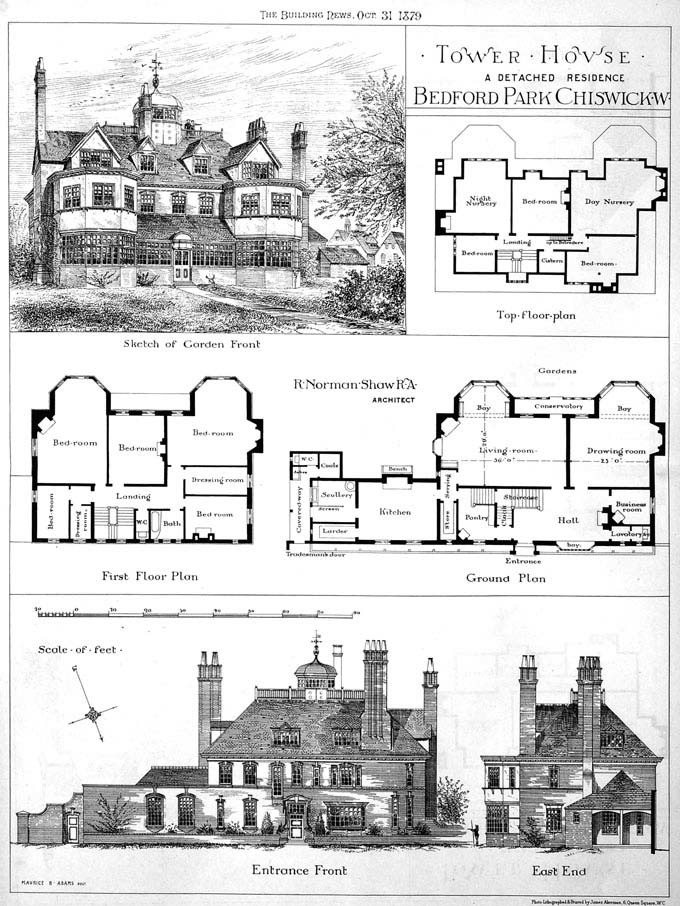 The eldest son, Horace, died in 1900, and Agnes Carr died in 1902 of rectal cancer, and in about 1904 Jonathan Thomas had to leave his Bedford Park mansion, the Tower House. He moved with his surviving son, Jonathan Fulton Carr, to 5 Addison Road (now Addison Grove). They moved again to 13 Queen Anne’s Grove in mid-1914, shortly before Jonathan’s death from a stroke on 1 February 1915. Number 13 Queen Anne’s Grove was destroyed during the Second World War.